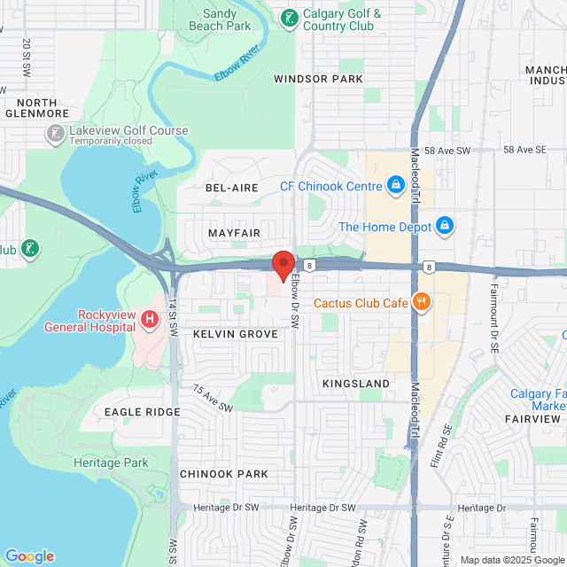 We are located on the second floor of the Mayfair Place building off Elbow Drive.